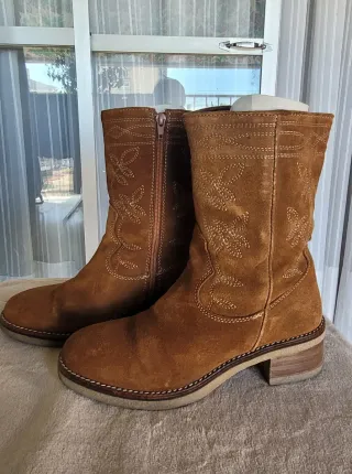 Botas Zara Tacón Cuadrado Ante T39