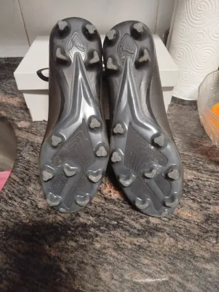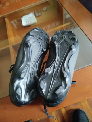 Vendo botas de fútbol Kipsta. Son de color negro con detalles blancos. De la talla 40. Tacos de goma. Tienen el uso de un año pero muy bien cuidadas y creo que admiten una segunda vida. Las dejo a la mitad de lo que me costaron. - Suela con tacos para césped artificial o natural.