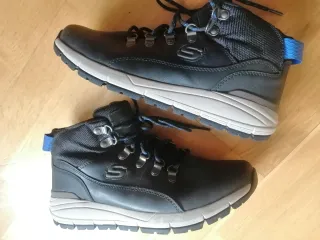 Botas de montaña Skechers en color negro con detalles azules. Perfectas para tus aventuras al aire libre. - Cierre con cordones. - Tirador trasero para facilitar su colocación. - Suela de goma para un buen agarre. -Relaxed fit: (ajuste Cómodo y libertad movimiento) - Air cooled: (frescura y comfort) -Gogamat Arch: ( diseño ergonómico para el soporte del arco del pie) - Memory foam: (para una mejor amortiguación)