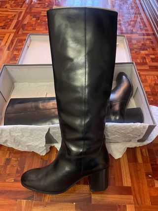 Botas altas de estilo clásico. - Material piel. - Tacón grueso para mayor comodidad. - Diseño de caña alta.