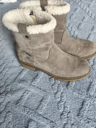 Botas de invierno con forro interior de borreguito. - Exterior de ante. - Detalle de botón. - Suela de goma.