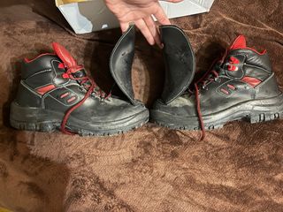 Botas de alta montaña de cuero negro. Perfectas para senderismo y actividades al aire libre. - Cierre con cordones. - Ojales metálicos resistentes. - Suela de goma con buen agarre. - Diseño robusto y duradero. Marca Xogori Kamet. Se daban antiguamente en el ejercito para maniobras de alta montaña. Son de caña corta como se puede apreciar en la foto donde se compara con una bota militar ordinaria