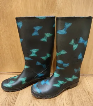 Botas altas de agua con un diseño llamativo de la marca Bimba y Lola. Talla 40. En perfecto estado, poco uso. - Estampado de figuras en tonos azules y verdes. - Caña alta.