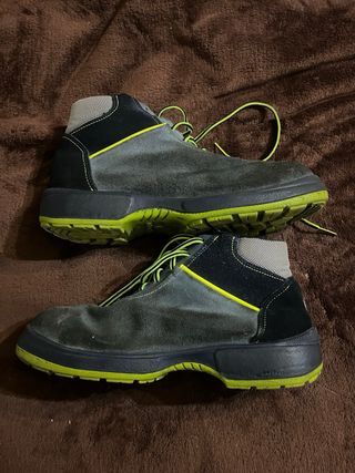 Usadas 4 veces, ver suela. A mí me parecen grandes para talla 40 - Cierre con cordones. - Detalle de costuras amarillas. - Cuello acolchado negro.