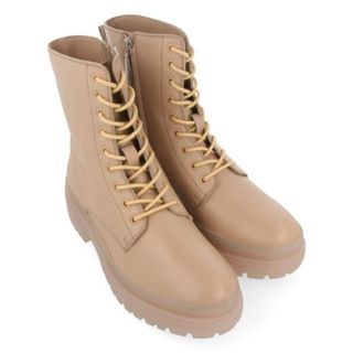 Botas de piel auténtica en color nude para mujer. Un básico para tu armario. - Cierre de cordones. - Cremallera lateral. - Suela de goma.
