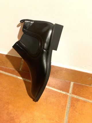 Botas estilo Chelsea de cuero sintético. - Diseño elástico en los laterales. - Suela de goma. - Acabado brillante.