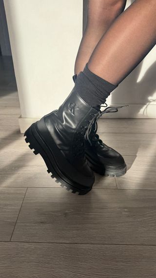 Botas de piel de la marca Calvin Klein. - las compré en un arrebato y posiblemente no las haya llevado mas de 7 dias. - son cómodas pero no son mi estilo - Cierre con cordones. - Suela gruesa y resistente. - tengo la caja intacta