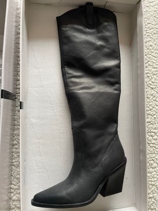 Botas altas de piel hasta la rodilla. - Material: Piel. - Diseño hasta la rodilla. - Cierre con cordón ajustable en la parte superior. - Usada una vez