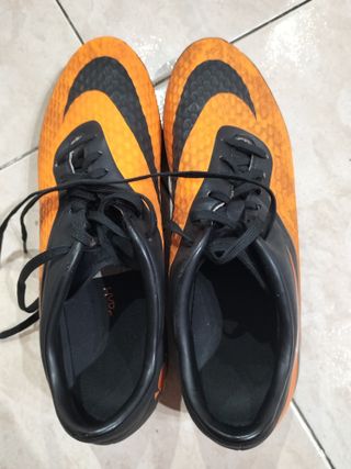Botas de fútbol Nike Hypervenom del año 2013. - Diseño en naranja y negro. - Cordones negros. Usadas pocas veces pero bien conservadas.