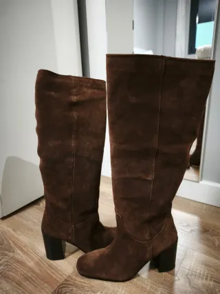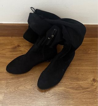 Botas altas de estilo moderno con cuña. - Material exterior tipo ante. - Detalle en material sintético. - Cierre de cremallera lateral usadas solo una vez