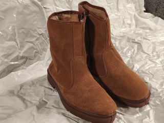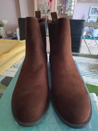 Botas de caña corta en color marrón, talla 39. Se entregan con otro par de regalo.Tambien talla 39 - Material exterior tipo ante. - Detalle de elástico lateral. - Antes 18€ Ahora 12€