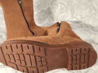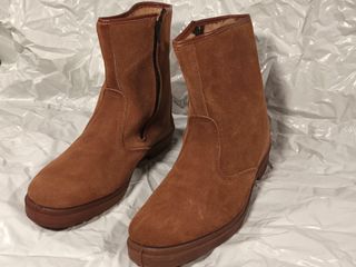 Botas de ante en color marrón, con forro interior de pelo sintético. - Puestas solo dos veces. - Detalle de pelo en el cuello de la bota. - Suela de goma.