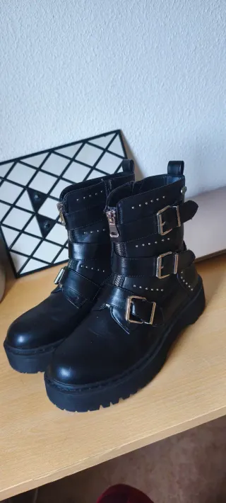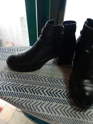 Botas de caña baja de la marca Stradivarius. - Diseño Chelsea con elástico lateral. - Acabado brillante. - Detalle metálico en el talón. Fueron un regalo y por afán quite etiquetas q no pude cambiarlas. Están puestas una sola vez pero me quedaron grandes y no quise usarla mas
