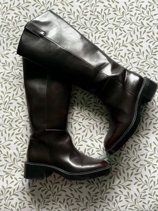 Botas altas de color marrón en talla 38. Un básico para tu armario. - Diseño elegante y moderno. - Suela gruesa y cómoda. - Caña alta hasta la rodilla.