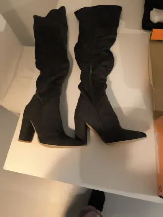 Botas altas para mujer, nuevas a estrenar por tí. - Diseño elegante y moderno. - Tacón de madera. - Caña alta hasta la rodilla.
