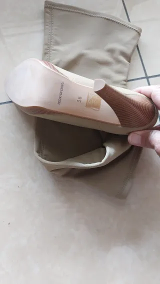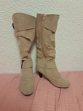 Botas de caña alta en color beige. Las usé 2 veces. Las vendo porque neceitaba una talla menor y solo quedaba la 38, me las compré pero me bailan un poco y no me las pongo. Quedan muy bonitas. - Cierre con cremallera lateral. - Detalle de hebilla en la parte superior y en el tobillo. - Tacón de bloque.