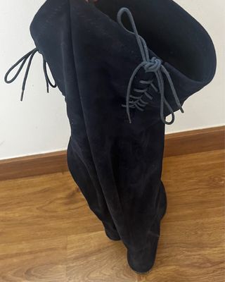 Botas altas de ante. - Material: Piel ante. - Cierre de cremallera lateral. - Detalle de pedrería en el talón. - Cordón decorativo parte posterior.