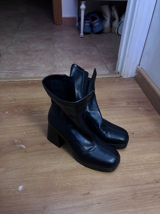 Botas de tacón de la marca Pull&Bear. - Diseño de caña media. - Tacón cuadrado grueso. - Cierre de cremallera lateral. USADAS UNA VEZ