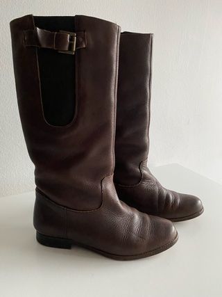 Botas de estilo casual con detalle de hebilla. -Talla 37 - Material exterior de piel. - Cierre de cremallera lateral. - Son grises aunque no se aprecien bien en las fotos. -Muy cómodas.
