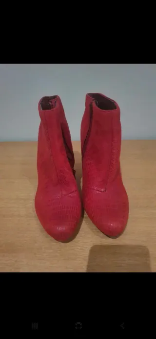 Botas de tacón con un diseño moderno y llamativo. - Acabado brillante. - Detalle de textura en la parte superior. - Tacón alto y fino. -Talla 38