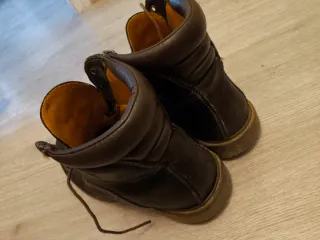 Botas Dr. Martens de cuero negro, forradas para mayor calidez. - Cierre con cordones. - Detalle de costuras amarillas. - Tirador trasero con logo. Las botas se han usado un par de veces como se puede observar la suela esta un poco desgastada y en la parte interna de la bota donde apoya el talon esta ligeramente desgastado también, las vendo porque con el forro interior tallan un poco menos y me molestan El cuero esta engrasado y cuidado, la bota se limpiara tanto por fuera como por dentro cuando de vaya a realizar el envío.