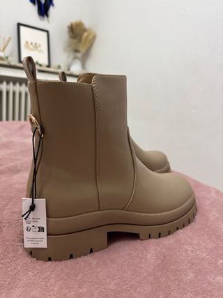Botín con detalle cordones en su frontal y detalle charms. Cierre mediante cremallera lateral. Plantilla flexible. Suela de goma dentada estilo track. Nuevas a estrenar, con etiqueta y bolsa de Zara, las vendo porque me confundí a la hora de hacer el pedido y compré dos pares por error. - Detalle de charms colgantes. - Suela gruesa y robusta.