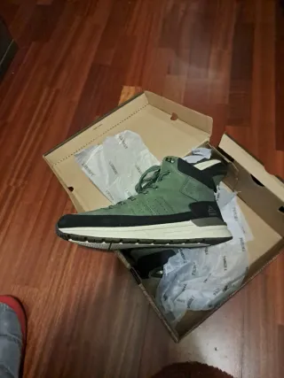 Botas de calle de la marca Paredes en talla 44. Combinan tonos verdes y negros. Completamente nuevas, a estrenar. Vendo porque se me pasó el plazo de devolución y tengo otras parecidas. - Diseño de caña alta. - Cordones resistentes para un ajuste seguro. - Suela con buen agarre.