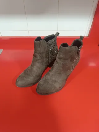 Botines de ante con un diseño moderno y elegante. - Detalle de tachuelas plateadas. - Cremallera lateral para facilitar su uso. - Tacón grueso para mayor comodidad.