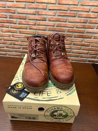 Botas de la marca Panama Jack para hombre de caña baja. - Modelo Fargo CT. - Piel Hope Grass color teja. - Talla 42. Tienen tres puestas. PVP 149 €
