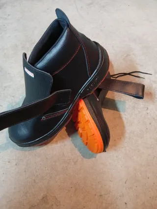 Botas de seguridad Robusta, nuevas a estrenar. - Color negro con detalles en naranja. - Cierre de velcro. - Suela de goma naranja.