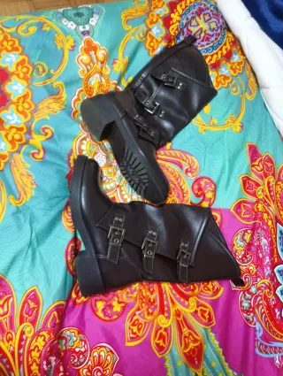 Botas de mujer con un diseño moderno y práctico. - Material de piel - Cierre de cremallera frontal. - Suela gruesa y resistente. - Tirador trasero para facilitar su puesta. A estrenar