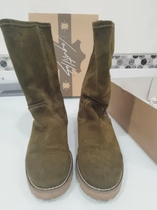 Botas de serraje en color verde kaki. Perfectas para el día a día. - Material exterior de serraje. - Inteir de borreguito crudo. - Suela de goma. Muy calentitas, puestas tres veces.