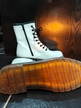 Botas de estilo robusto en color blanco, perfectas para añadir un toque moderno a tu atuendo. - Cierre con cordones negros. - Detalle de costuras blancas en la suela. - Caña alta.