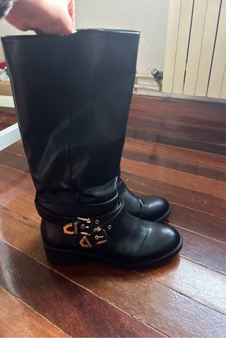 Botas de montar de caña alta con detalles de hebillas doradas. - Diseño elegante y moderno. - Cierre con hebillas. - Material sintético.