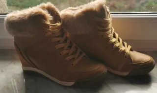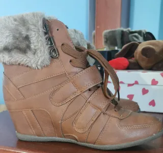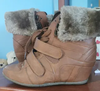 Botas de estilo casual para mujer. - Diseño tipo sneaker con cuña. - Detalle de pelo sintético en el cuello. - Cierre con cordones y velcro. - Material exterior efecto piel.