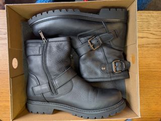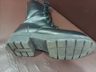 Botas militares color marrón chocolate dede piel sintética (parece piel natural). Número 39 completo. Nuevas. Muy cómodas y confortables! Son fáciles de calzar y se adaptan bien en la pierna. Forro interior cálido. Suela track antideslizante. Cierre de cremallera en perfecto estado y cordones. Compradas en tienda local.