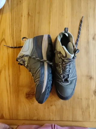 Botas de senderismo con un diseño moderno y funcional. - Combinación de colores gris y verde oliva. - Cordones resistentes para un ajuste seguro. - Suela con buen agarre.