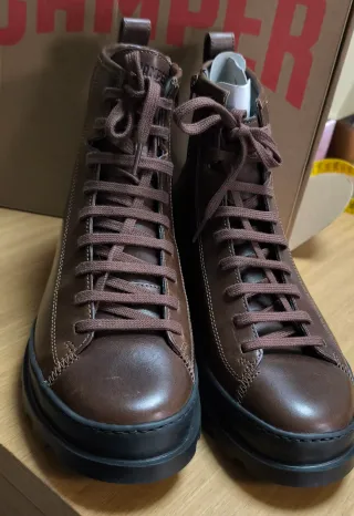 Botas de cuero de la marca Camper, modelo Brutus. Número 41 hombre - Color marrón. - Cierre de cremallera lateral. - Cordones para ajuste. - Suela gruesa de goma negra.