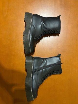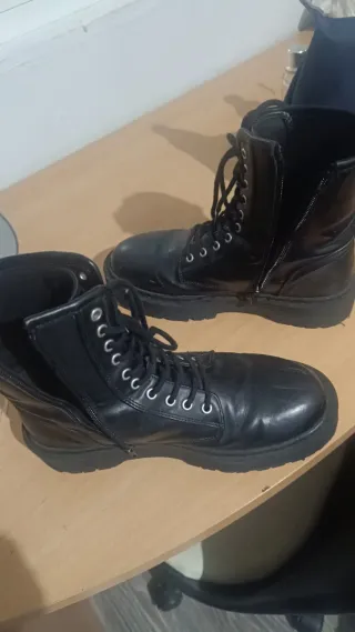 Botas tipo militar. Un par de usos pero una tiene un roce (foto) están intactas por dentro y la sueña también como se ve. Tiene cremallera y cordón. Compradas en la tienda Merkal. D'angela. Muy cómodas.