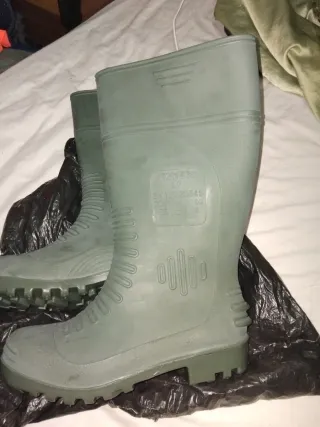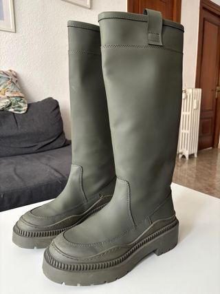 Botas de caña alta con cordones. - Diseño impermeable. - Color verde oliva. - Talla 38. - Muy cómodas. - Suela de goma blanda.