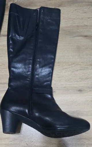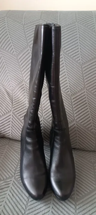 Elegantes botas altas de piel. - Cierre con cremallera lateral. - Tacón cuadrado. - Diseño clásico y versátil.