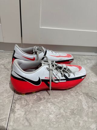 Botas de fútbol Nike Phantom en color blanco y rojo. - Diseño deportivo. - Cierre con cordones.