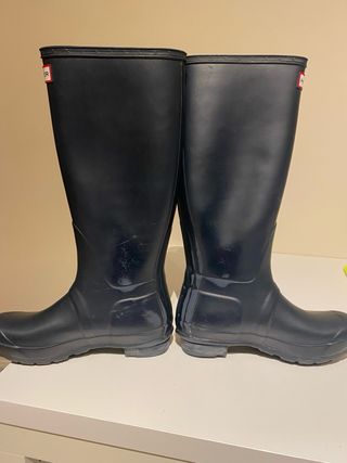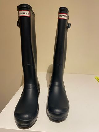 Botas de agua altas de la marca Hunter en color negro. Perfectas para días de lluvia. - Diseño clásico. - Acabado brillante.