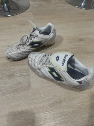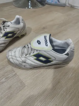Botas de fútbol Lotto en color blanco con detalles en azul y verde. - Diseño con cuadrícula. - Cierre de cordones. - Logo de la marca en la lengüeta y lateral.