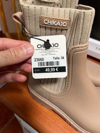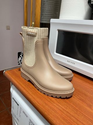 Botas de agua de la marca Chika10, con un diseño moderno y cómodo. NUEVAS. Entrega en mano en Madrid. - Caña de punto. - Detalle de logo en la caña. - Suela de goma con buen agarre.