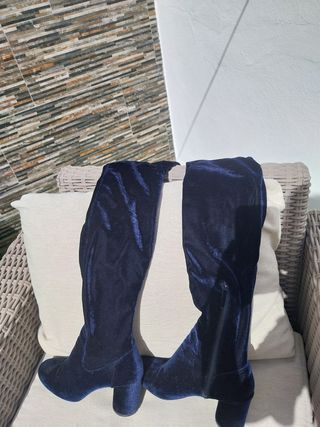 Bota en azul marino de pelo de melocotón sin estrenar tapa repuesto tapa tacones