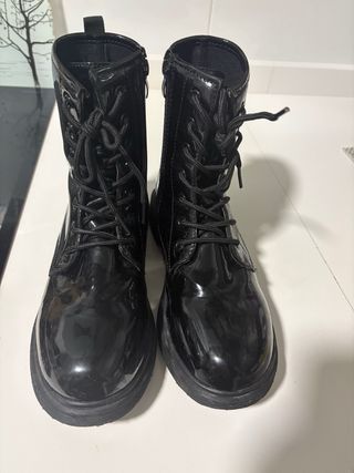 Botas de charol con cordones y cremallera. - Diseño moderno y brillante. - Cierre lateral con cremallera. - Cordones para un ajuste personalizado.