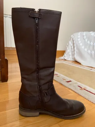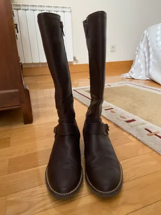 Botas marrones de caña alta de la marca Garvalín, confeccionadas en piel natural de excelente calidad. La piel está en perfecto estado, suave y bien cuidada. El único signo de uso se aprecia en la suela, debido a poco uso (ver fotos), el resto de la bota está prácticamente como nueva. ☑️ Marca: Garvalín 📏 Talla: 39 🧶 Material: piel / cuero natural 🟤 Color: marrón chocolate/oscuro 🟤 Caña: alta ✅ Estado: nuevo / poco usado (uso visible solo en la suela, ver fotos) ⏰ Envío de 24-48 hrs laborales Para cualquier duda o si quieres más fotos, escríbeme sin compromiso 😊