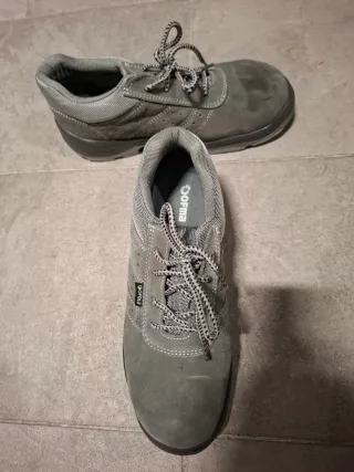 Botas de trabajo de la marca Ofma en color gris. Son cómodas y resistentes. Zapatillas de seguridad - Material exterior de ante. - Cierre con cordones. - Suela de goma. - Diseño con perforaciones.