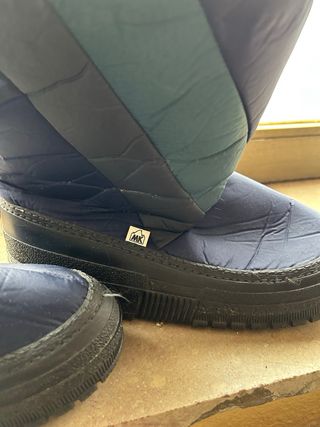 Botas de nieve para mantener los pies calientes y secos. - Parte superior de tela azul. - Suela y parte inferior de goma gris. - Forro interior suave y cálido. - Número 34/35